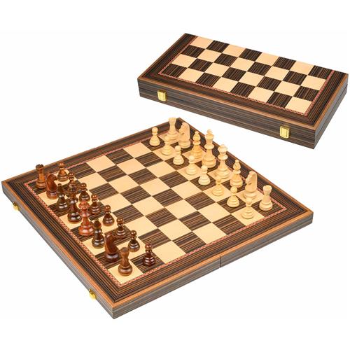 Maak je schaakspel compleet met de Philos schaakset in toernooiformaat. Deze hoogwaardige schaakset wordt geleverd in een mooie cassette gemaakt van MDF, ingelegd met ahornfineer en fineerpapier. De veldmaat van het schaakspel is 55 mm en de gewogen schaakstukken met vilten bases zijn vervaardigd van elzenhout, met een koningshoogte van 98 mm.