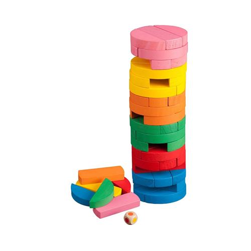 Philos Timber is een uitdagend spel voor de hele familie. Deze versie bestaat uit een ronde toren van gekleurde houten blokken wat het spel een extra dimensie geeft. De dobbelsteen bepaalt welke kleur je uit de toren moet halen, zonder de toren te laten vallen!
