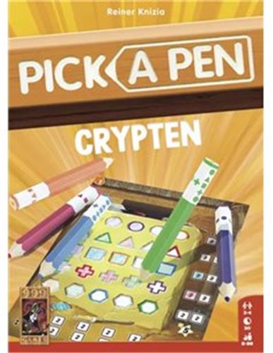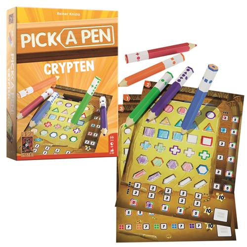 Pick-a-Pen: Crypten is een spel uit de Pick-a-Pen-serie van de gerenommeerde auteur Reiner Knizia en bevat scorevellen van 3 oplopende niveaus. Op scorevellen 2 en 3 vind je potloodsymbolen om een beurt te kunnen annuleren en bonussen voor vierkanten in 1 kleur. De Pick-a-Pen-serieis een nieuwe generatie innovatieve Roll & Write-spellen, waarin werkelijk met potloden wordt gerold. Dit zorgt ervoor dat met hetzelfde speelmateriaal veel verschillende spelmechanismen mogelijk worden gemaakt. Maar in elk spel staat het inkleuren van velden centraal. Scoor jij daarbij de meeste punten?