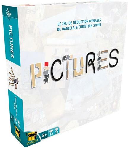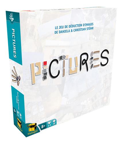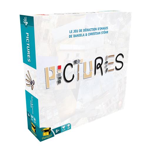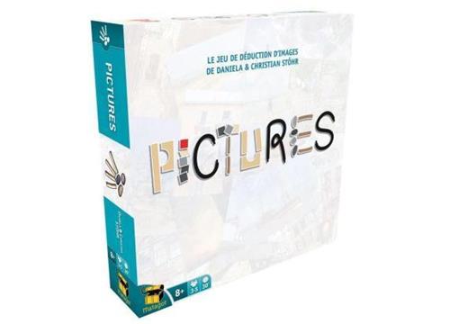 Met Pictures moet je proberen afbeeldingen en foto's na te bootsen om anderen te laten raden. Je gebruikt hier alleen geen tekeningen of woorden om hetgeen op de afbeelding of foto na te bootsen. Wat je wel gebruikt zijn 2 stukken touw, kiezelstenen, stokken en houtblokken! Met willekeurig gekozen fotokaarten vorm je een raster van 4 bij 4. De vier rijen definieer je met letterfiches en de vier kolommen met cijfertokens. Vervolgens neemt elke speler een set voorwerpen en trekt een coördinatenfiche uit de stoffen zak om zijn geheime foto te selecteren. Alle spelers proberen tegelijkertijd hun foto uit te beelden met behulp van de door hen gekozen onderdelen, zodat deze herkend kan worden door andere spelers. Zodra alle spelers klaar zijn, begint het raden. Iedere speler die een foto correct raadt, krijgt 1 punt. De persoon die erin is geslaagd om de geheime foto te laten raden, krijgt ook 1 punt voor elk goed antwoord. Na 5 rondes eindigt het spel en heeft degene met de meeste punten het spel gewonnen.