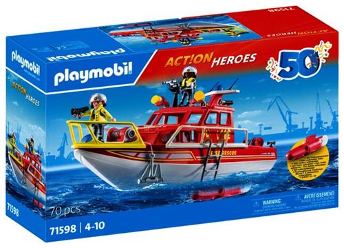 - Bij Dreamland kun je PLAYMOBIL Action Heroes 50YR Brandweerboot - 71598 kopen voor de prijs van € 39,99. Dit is vandaag de goedkoopste webshop.