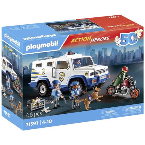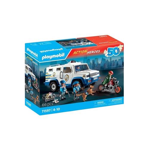 - Bij Bol.com kun je PLAYMOBIL Action Heroes 50YR Geldtransport - 71597 kopen voor de prijs van € 39,99. Dit is vandaag de goedkoopste webshop.
