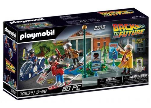 Na zijn eerste reis terug in de tijd, gaat Marty McFly nu naar 2015. In de toekomst zit Griff, de kleinzoon van Marty's aartsrivaal Biff Tannen, hem op de hielen, dit keer zelfs op hoverboards! Zal Marty erin slagen Griff te ontlopen, zijn familie te redden en terug te keren naar 1985? Met de nieuwste Back to the Future set van PLAYMOBIL kunnen alle fans van de cultfilmtrilogie nu de legendarische hoverboardachtervolgingsscène naspelen. Ook inbegrepen in de speelset is Doc Brown in een futuristische toekomst outfit, evenals leuke toevoegingen voor de DeLorean (70317) en een verzamelansichtkaart voor de echte fans. De figuren kunnen aan de hoverboards worden bevestigd via de voetklem.