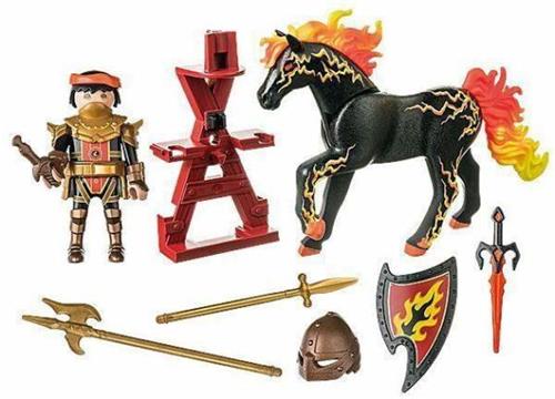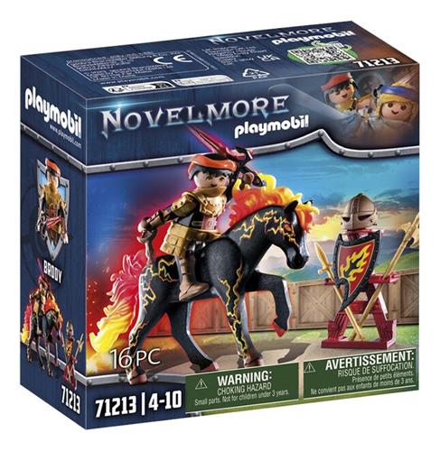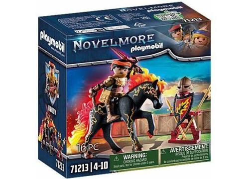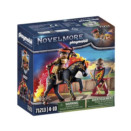 Duik in de strijd met de verhitte Burnham Raiders vuurridder van PLAYMOBIL. Brody Burnham wil het riddertoernooi niet missen en wil zijn vaardigheden bewijzen. Samen met zijn vurige paard traint hij ijverig in een breed scala aan disciplines om een goed figuur te slaan op het toernooi. Op het wapenstandaard kan hij een zwaard, speer, schild en helm opbergen. Met ingenieuze functies en interessante personages nodigt de Novelmore-speelwereld je uit voor spannende ridderavonturen. Veel plezier voor kinderen vanaf 4 jaar.