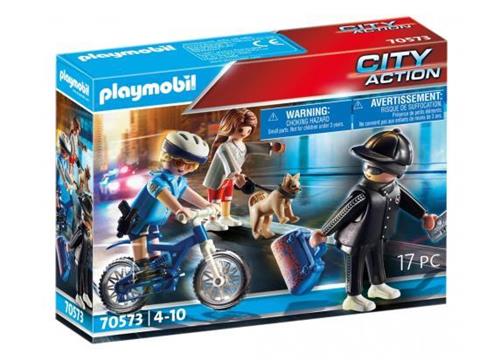 - Bij Dreamland kun je PLAYMOBIL City Action Politiefiets: achtervolging van de zakkenroller - 70573 kopen voor de prijs van € 9,99. Dit is vandaag de goedkoopste webshop.