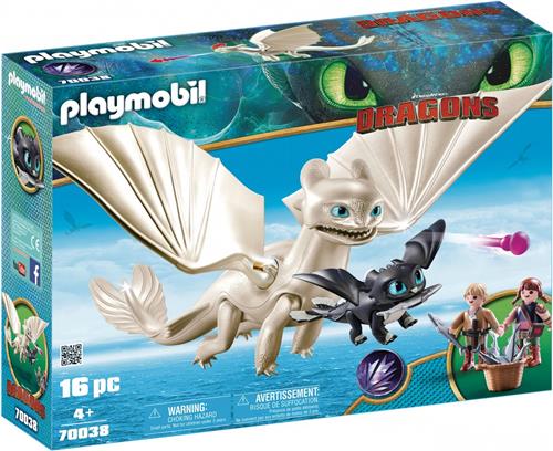 Ontdek de magische wereld van draken met de PLAYMOBIL Dragons set "Hemelfeeks en babydraak met kids" (70038). Deze set neemt je mee op avontuur waar Bijtkwijt en Hikkert zowel verrast als enthousiast zijn wanneer de witte drakenvrouw, Hemelfeeks, tevoorschijn komt. Eenmaal samen met de zwarte babydraak vormen ze een gelukkig drakengezin. Inclusief twee Vikingkinderen en verschillende accessoires, beleef je de spannendste avonturen in de drakenwereld.