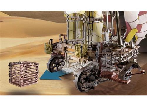 De avonturen in Sal'ahari Sands gaan verder. Nieuwe helden Arwynn, Gwynn en Dario hebben hun krachten gebundeld met de dappere woestijnmensen van de Ahari om het afschuwelijke skeletleger het hoofd te bieden. Ze gebruiken de zandstormbreker om snel door het hete woestijnzand te bewegen en te overwinnen Zoutvlakten en zandduinen met gemak. Aanvallers worden op afstand gehouden met het grote balgkanon, stormram en nieuwe gifpijlen. De zijnetten kunnen worden gebruikt om schorpioenen of voorwerpen uit het zand te vissen terwijl u rijdt. Twee Ahari zijn aan boord naast Arwynn en Gwynn - Fighters, een balgkanon, gifpijlen en nog veel meer spannende extra's voor spannende woestijnavonturen. Het schip kan met behulp van de wielen over de grond worden voortgeduwd. De Sandstorm Breaker heeft drie soorten wapens: een balgpistool om te laden met schuimballen die kunnen worden afgevuurd door in de balg te knijpen, een horizontaal beweegbare stormram met een net voor het opbergen van de foamballen en twee gifkanonnen op beweegbare platforms aan weerszijden van het schip, elk met een kanon inclusief sponsprojectielen. In de achtersteven van het schip bevindt zich een uitneembare gevangenis die plaats biedt aan een PLAYMOBIL-figuur. Diverse luiken bieden opbergruimte of verstopplekken voor accessoires. De zeilen kunnen in verschillende standen worden gedraaid.
