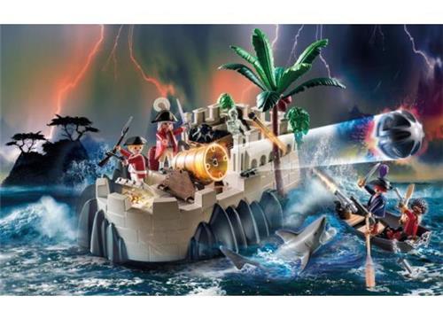 De speelset bevat een soldatenbastion met groot kanon, vier gedetailleerde PLAYMOBIL-figuren, een roeiboot met zwenkbaar kanon, een schatkist vol goud en vele extra accessoires. Zowel de piraten als de soldaten dromen ervan het legendarische schateiland te vinden. De race naar het eiland is begonnen, maar wie zal als eerste de schat bereiken? Stimuleer de fantasie van je kind met deze spannende speelset vol avontuur.