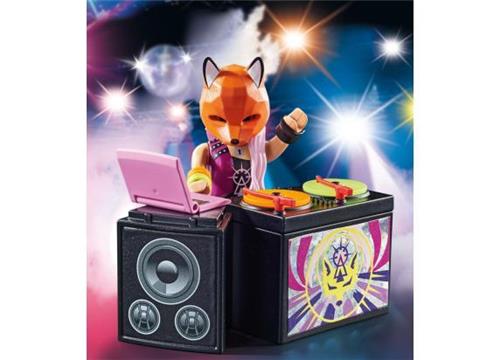 Deze DJ is de ster van de muziekscene. Als ze start met draaien, blijft niemand op zijn stoel zitten. Slechts één ding blijft een mysterie: wie verbergt zich achter het vossenmasker? PLAYMOBIL Special Plus biedt extra speelplezier. Kleine sets met een figuur en accessoires zijn ideaal om te verzamelen, te ruilen of weg te geven. Inclusief coole vossenmasker.