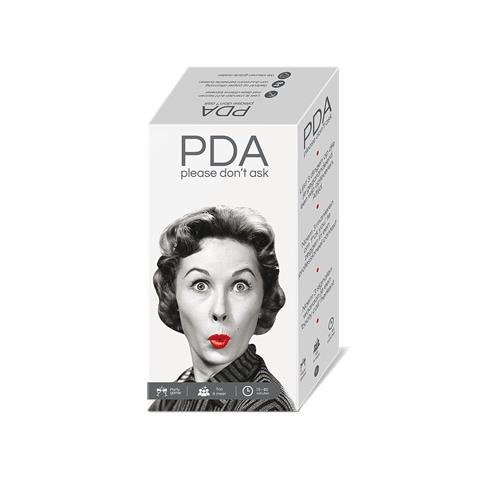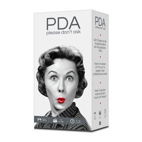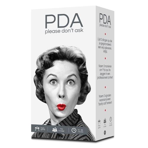 Onthul in 8 seconden de zieke gedachten van je vrienden of familie met de doldwaze vragen van PDA - Please Don't Ask. In dit leuke partyspel zorgen de gekke vragen op de kaarten voor de leukste antwoorden: spontaan & zonder filter. Als de tijd om is, komt de waarheid altijd uit! Please Don't Ask zal leiden tot doldwaze gesprekken en inside jokes die nog lang mee zullen gaan in je vriendengroep.
