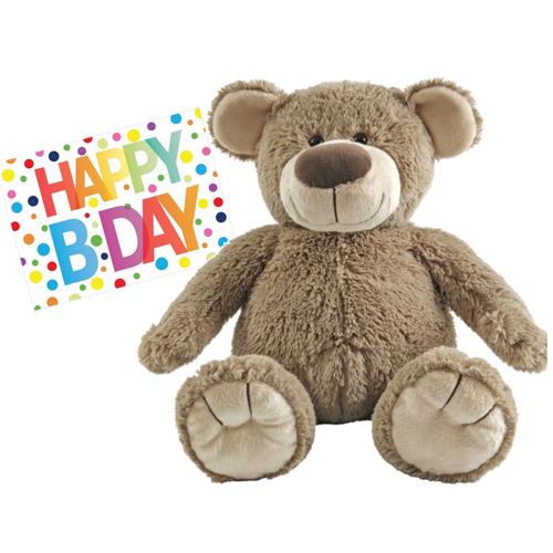 Pluche knuffel Happy Horse knuffelbeer 55 cm met A5-formaat Happy Birthday wenskaart