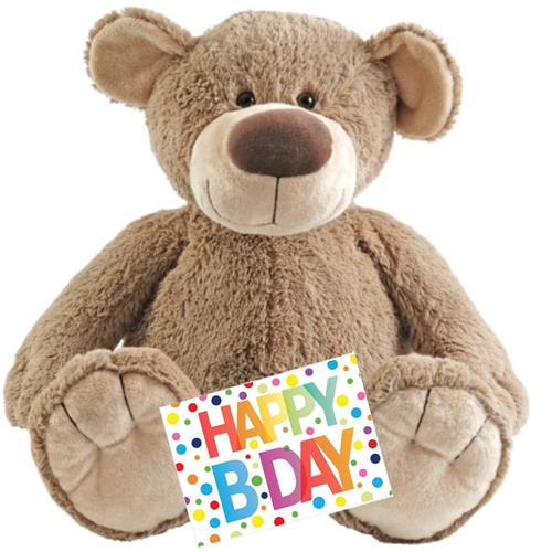 Pluche knuffel Happy Horse knuffelbeer 70 cm met A5-formaat Happy Birthday wenskaart