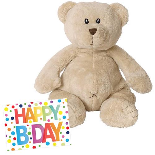 Pluche knuffel Happy Horse knuffelbeer beige 55 cm met Happy Birthday wenskaart