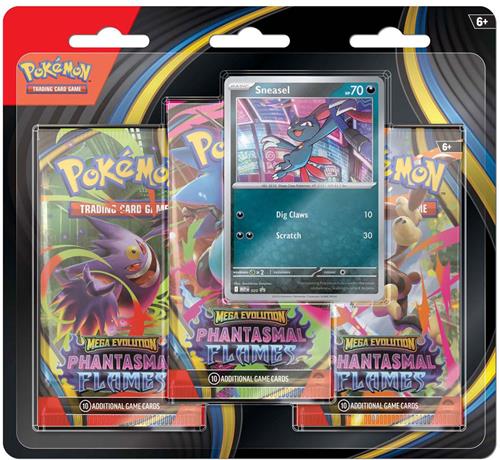 - Bij Spelhuis kun je Pokémon Mega Evolution Phantasmal Flames 3-Pack Booster kopen voor de prijs van € 9,99. Dit is vandaag de goedkoopste webshop.