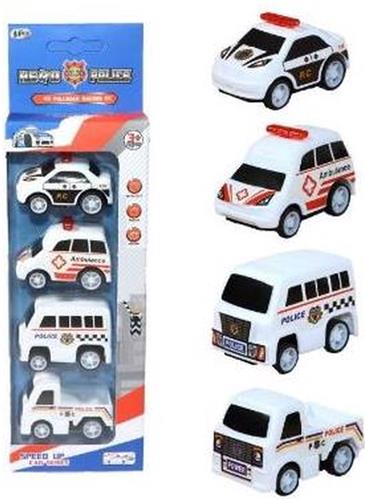 Politieauto Ambulance 5,5cm set a 4 stuks pull-back