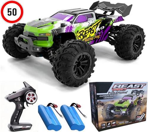 Ervaar de ultieme snelheid met de PolkaHome® RC Auto 1:16 4WD! Deze krachtige offroad truggy biedt een ongeëvenaarde combinatie van snelheid en controle. Met een indrukwekkende topsnelheid van maar liefst 50 km/u en een vierwielaandrijving kun je elk terrein met gemak veroveren, of het nu asfalt, zand, gras of modder is.
