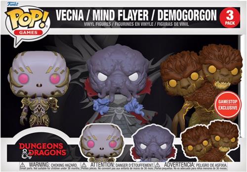 Maak kennis met de gevreesde Vecna, Mind Flayer én Demogorgon... als Funko Pop's! Herbeleef de spannende en duistere momenten uit Dungeons & Dragons met de 3-pack Funko Pop's van Vecna, Mind Flayer en Demogorgon! Deze gedetailleerde collectibles vangen deze duistere gedaantes in hun kenmerkende poses en outfits.