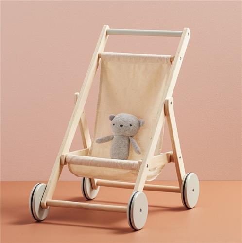 Kenmerken van deze Kids Concept poppenbuggy zijn de afmetingen van 30 x 43 x h 50 cm, gemaakt van hout en katoen, en geschikt voor kinderen vanaf 3 jaar. De buggy heeft een stevig houten frame met houten wielen die voorzien zijn van een rubberen rand voor extra bescherming van je vloer. Je kunt de buggy soepel vooruit duwen.