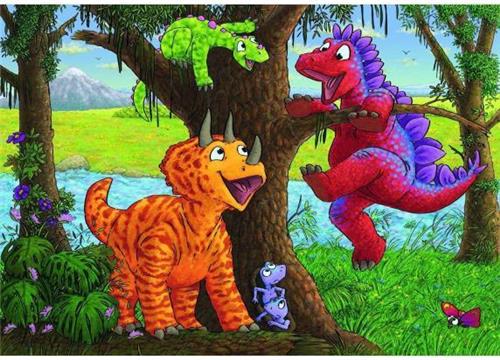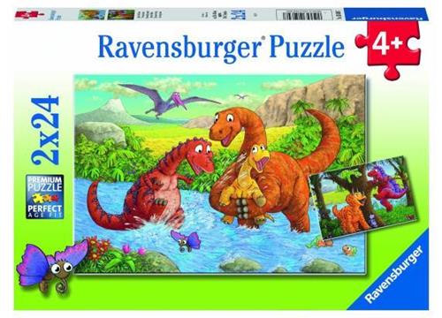 Puzzel 2x24 stukjes Vrolijke Dino AND apos;s