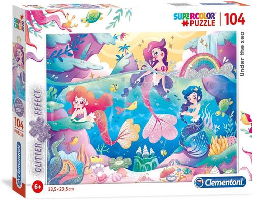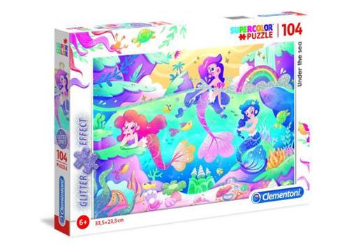 De PZL 104 GLITTER UNDER THE SEA puzzel is ideaal voor vrouwen vanaf 12 jaar. Deze puzzel met 104 stukjes is kleurrijk en gemaakt van stevig karton. De puzzel bevat afbeeldingen van De Kleine Zeemeermin en heeft een afmeting van 23.5 cm bij 33.5 cm met een hoogte van 4 cm. Het puzzelthema is geïnspireerd op televisie en film, en het is een legpuzzel die zorgt voor uren speelplezier. Let op: vanwege kleine onderdelen is deze puzzel niet geschikt voor kinderen onder de 4 jaar en dient onder toezicht van volwassenen te worden gebruikt.