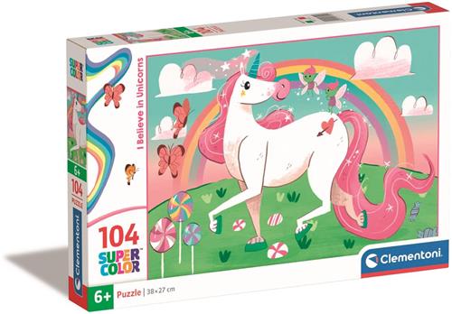 Met de PZL 104 I BELIEVE IN UNICORNS BRIILLIANT puzzel kunnen kinderen vanaf 6 jaar zich vermaken met 104 puzzelstukjes in een kleurrijk design. Deze legpuzzel met een fantasie thema en geen specifiek personage is gemaakt van karton en weegt 0.45 kg. De puzzel heeft een afmeting van 34.3 cm in lengte, 24.9 cm in hoogte en 3.5 cm in breedte. Het is een speelgoed dat zowel jongens als meisjes aanspreekt.