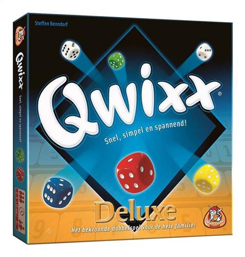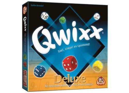 Qwixx Deluxe is een luxe versie van het Qwixx spel, welke genomineerd is voor Speelgoed van het Jaar 2013. Deze versie bevat afwisbare scorebordjes en een zachte dobbelbodem voor oneindig veel speelplezier. Bij Qwixx hoef je niet op je beurt te wachten - iemand dobbelt en iedereen kan de worp benutten. Hoe meer getallen je op je scorebord aankruist, des te meer punten je krijgt. Qwixx kan in twee minuten worden uitgelegd en is spannend tot de laatste worp. Dobbel mee en laat je aansteken door de QWIXX-koorts!