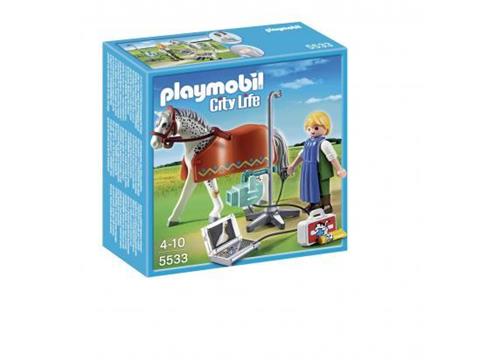 In de set vind je alles wat je nodig hebt om de gezondheid van het paard te controleren. De radioloog, uitgerust met een operatieschort en verschillende medische instrumenten zoals een tang, spuit, schaar en stethoscoop, staat klaar om te helpen. Kinderen kunnen de afneembare pleisters en verwisselbare röntgenfoto's gebruiken om het paard op een veilige en speelse manier te behandelen.