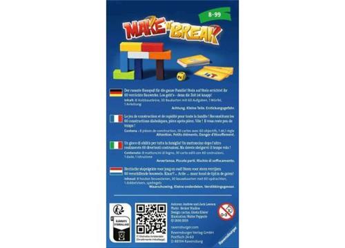 - Bij Massamarkt kun je Ravensburger 23444 - Make 'n' Break - Behendigheidsspel voor onderweg kopen voor de prijs van € 5,34. Dit is vandaag de goedkoopste webshop.