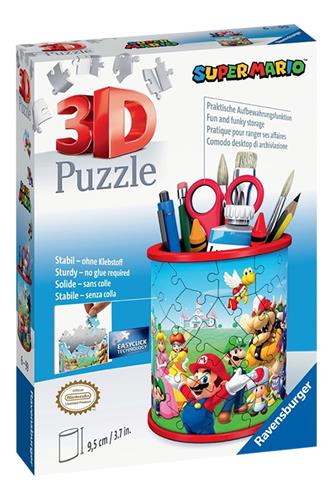 - Bij Bol.com kun je Ravensburger 3D Puzzel Pennenbak Super Mario - 54 stukjes kopen voor de prijs van € 8,63. Dit is vandaag de goedkoopste webshop.