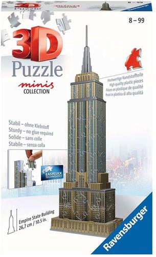 - Bij Bol.com kun je Ravensburger 3D Puzzle 11271 - Mini Empire State Building - Miniaturversion des berühmten Wahrzeichens aus New York zum Puzzeln in 3D - ab 8 Jahren kopen voor de prijs van € 15,99. Dit is vandaag de goedkoopste webshop.