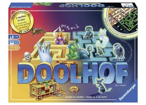 Doolhof - de Ravensburger klassieker met het magische spelbord. Al 30 jaar verschuiven miljoenen mensen de gangen en zoeken ze naar schatten. En nu kan je voor het eerst het doolhof ook in het donker spelen! Nieuwe schatten komen uit het niets tevoorschijn en de gangen lichten op: een fascinerende ervaring die kleine en grote spelers versteld laat staan! Telkens veranderen de gangen; het lijkt wel of het spookt. De schat lag net nog daar! Het doolhof lijkt wel betoverd. Wie weet ondanks die betovering toch de geheimzinnige voorwerpen en schatten te vinden? Een geestig spel vol verrassingen.