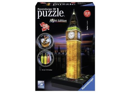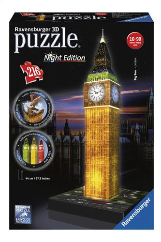 - Bij Spelhuis kun je Ravensburger Big Ben Night Edition- 3D puzzel gebouw - 216 stukjes kopen voor de prijs van € 31,99. Dit is vandaag de goedkoopste webshop.