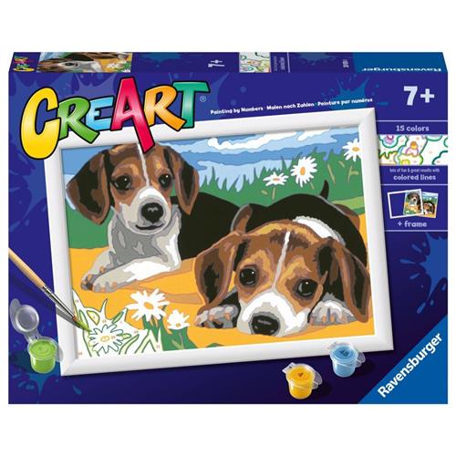 - Bij Bol.com kun je Ravensburger CreArt Beagle Puppies - Schilderen op nummer voor kinderen kopen voor de prijs van € 12,98. Dit is vandaag de goedkoopste webshop.