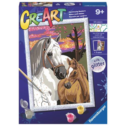 - Bij Bol.com kun je Ravensburger CreArt Sunset Horses - Schilderen op nummer voor kinderen kopen voor de prijs van € 16,99. Dit is vandaag de goedkoopste webshop.