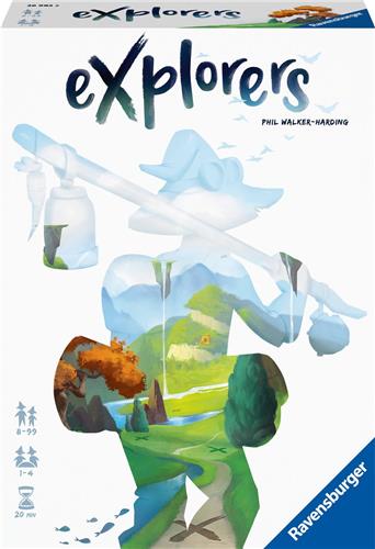 Finally, you found it! A new world, untouched and ready to be explored. The terrain consists of levitating rocks that are constantly moving, which have hidden this world from view for centuries. But you are not alone-other explorers are traveling through this strange world, seeking its treasures. Use the map to plan your route wisely and become the greatest explorer of all time! A simple, fast-paced flip & write game with over 1 million possible combinations How does it work? 1. Choose a terrain 2. Track your adventure 3. Collect items and score points Contents: - 4 player boards - 32 terrain tiles - 12 scoring tiles - 8 exploration cards - 4 dry erase markers - 1 first player token - Instructions Ontdek een nieuwe wereld met het Engelstalige bordspel Explorers van Ravensburger! A simple, fast-paced flip & write game with over 1 million possible combinations! How does it work? 1. Choose a terrain 2. Track your adventure 3. Collect items and score points Contents: - 4 player boards - 32 terrain tiles - 12 scoring tiles - 8 exploration cards - 4 dry erase markers - 1 first player token - Instructions