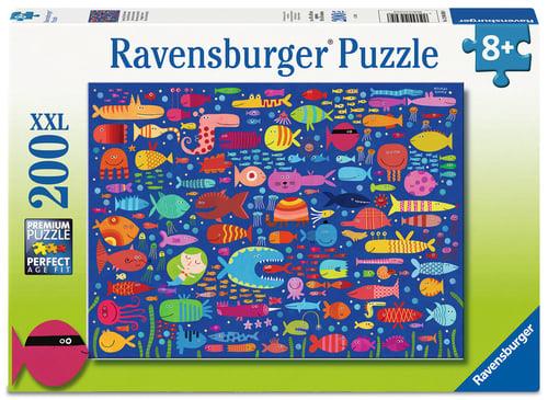 Met een afmeting van ca. 49 x 36 cm wanneer deze gelegd is, is de puzzel groot genoeg om het levendige tafereel van verschillende vissoorten tot leven te brengen. Elke vis heeft zijn eigen unieke vorm, kleur en uitdrukking, wat het puzzelen niet alleen uitdagend, maar ook ontzettend leuk maakt. Dankzij de hoogwaardige Ravensburger kwaliteit en de Easy Click Technology kun je rekenen op een stevige en duurzame puzzel.