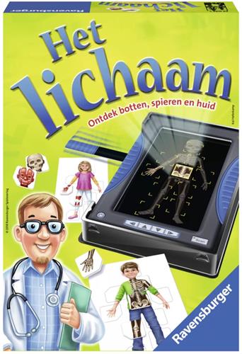 Met het Ravensburger Het lichaam leerspel ontdekken kinderen op een speelse manier het menselijk lichaam. Het educatieve spel heeft een speeltijd van 15 minuten en is geschikt voor zowel jongens als meisjes. Met het röntgenapparaat, de onderzoekstaaf, lichaamsdeel-schijfjes en het aflegbord kunnen kinderen op een interactieve manier leren over het lichaam.