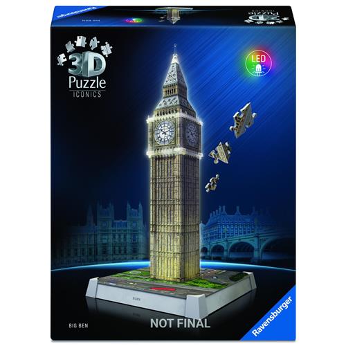 - Bij Bol.com kun je Ravensburger Iconics: Big Ben - with light - 3D Puzzel kopen voor de prijs van € 24,99. Dit is vandaag de goedkoopste webshop.