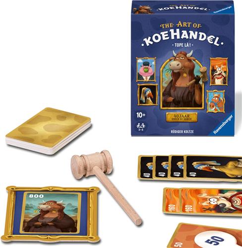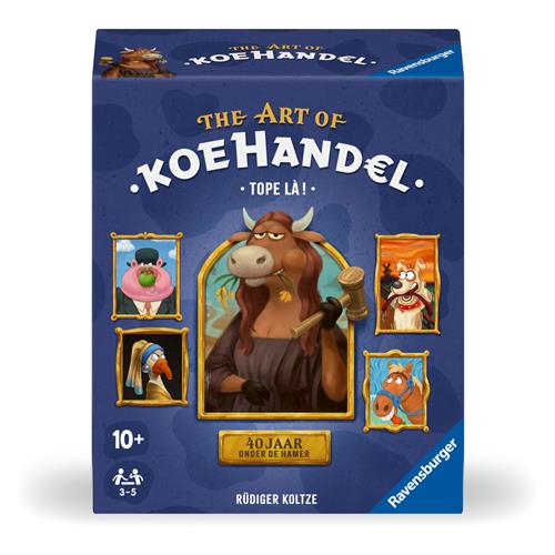 Vier het 40-jarig jubileum van het populaire bordspel met de Ravensburger Koehandel 40 Jaar - Bordspel - Jubileumeditie. Deze unieke editie brengt een speelse en artistieke twist aan het traditionele bluff- en onderhandelspel, met koeien die zijn verkleed als beroemde kunstwerken van werelds grote meesters zoals de Mona Lisa en De Sterrennacht. Het is niet alleen een spel, maar ook een viering van kunst en strategie die spelers van alle leeftijden zal boeien!