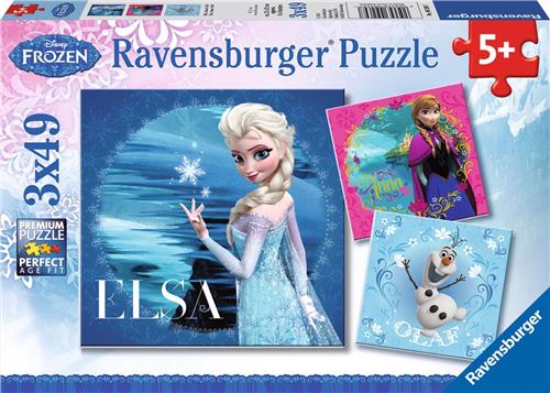 - Bij Fietsenwinkel be kun je Ravensburger puzzel Disney Frozen Elsa, Anna & Olaf - 3x49 stukjes - kinderpuzzel kopen voor de prijs van € 15,99. Dit is vandaag de goedkoopste webshop.