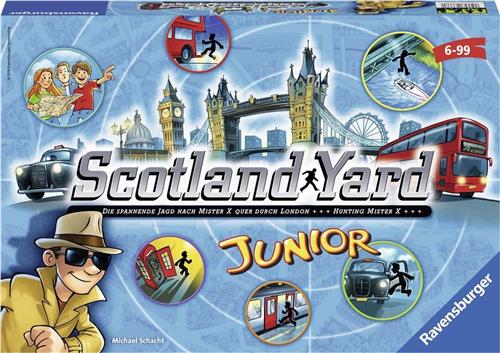 In Scotland Yard Junior jagen de slimme detectives samen op Mister X kris kras door Londen. Raden zij waar z´n volgende vluchtpoging naar toe gaat? Of is Mister X ze weer te slim af? Scotland Yard Junior bevat eenvoudige regels, korte spelrondes en is spannend tot het eind. Samen jagen de slimme detectives op Mister X kris kras door Londen. Raden zij waar z´n volgende vluchtpoging naar toe gaat? Of is Mister X ze weer te slim af? Scotland Yard. Eenvoudige regels, korte spelrondes en spannend tot het eind!