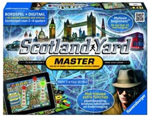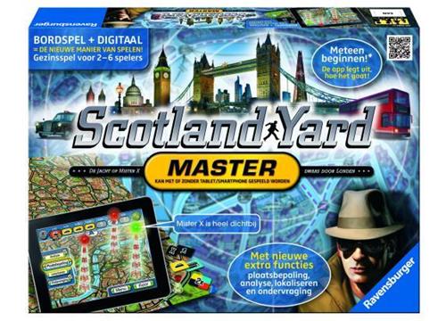 In het coole bordspel Scotland Yard Master maak je jacht op Mister X. Je gaat dwars door Londen en door de gratis app te downloaden verandert jouw smartphone of tablet in een digitale regelkamer van de detectives. De moderne opsporingsmethoden van analyse tot plaatsbepaling helpen mee Mister X op het spoor te komen! Maar zo gemakkelijk is het allemaal niet wan ook Mister X is moderner geworden. Hij heeft namenlijk een nieuw vervoersmiddel, een per app bestuurde helikopter. De innovatieve combinatie van bordspel-klassieker en digitaal speelplezier maakt het avontuur nóg spannender en zorgt garandeert voor urenlang speelplezier.
