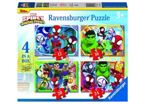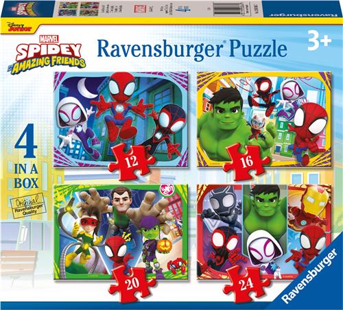 - Bij Bol.com kun je Ravensburger Spidey and his Amazing Friends 4in1box puzzel - 12+16+20+24 stukjes - kinderpuzzel kopen voor de prijs van € 10,99. Dit is vandaag de goedkoopste webshop.