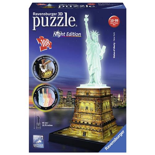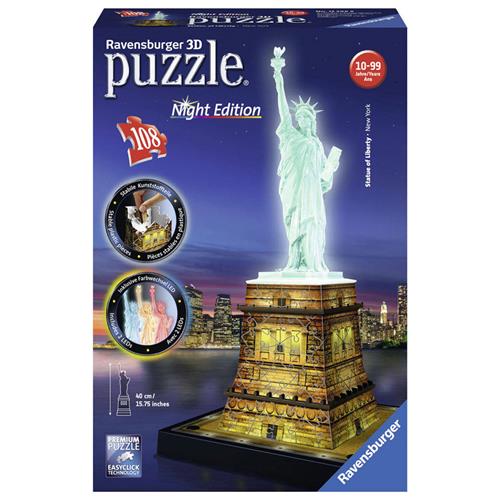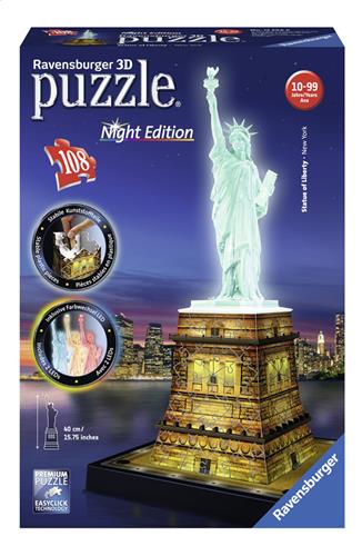 - Bij Toychamp kun je Ravensburger Statue of Liberty Night Edition- 3D puzzel gebouw - 108 stukjes kopen voor de prijs van € 24,99. Dit is vandaag de goedkoopste webshop.