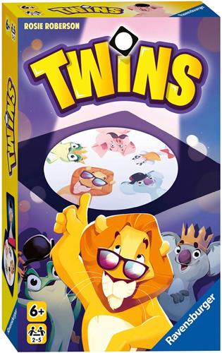 Twins - snel kaartplezier, waarbij iedereen tegelijk speelt! Wie supersnel de tweeling roept, die bij zichzelf en op de dierenkaart in het midden staat, wint! Inhoud: 50 dierenkaarten, 25 speler-kaarten (5 sets), 1 handleiding. Het Ravensburger Twins kaartspel biedt snel plezier voor spelers van 6-99 jaar oud en kan gespeeld worden door 2-5 spelers. Met een speeltijd van 10 minuten is dit kaartspel perfect voor snelle speelsessies.