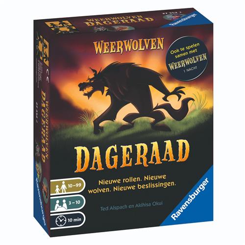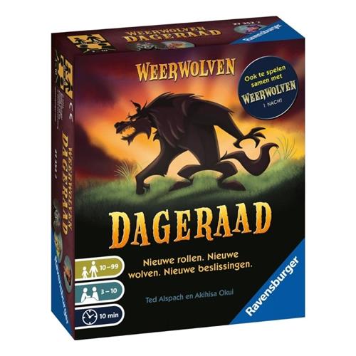Na een lange nacht bij volle maan breekt de dageraad aan in het kleine dorp, maar het brengt niets goeds. De weerwolven zijn terug en ze zijn gevaarlijker dan ooit. De machtige Alfawolf, de Mystieke wolf en de slaperige Droomwolf hebben zich tussen de dorpelingen gemengd. Zullen ze er op tijd achter komen wie de verraders zijn? Inhoud: 16 rollenkaarten & ronde rollenfiches, 2 schilden, 6 artefacten. Geschikt voor kinderen vanaf 10 jaar en voor 3 tot 10 spelers.