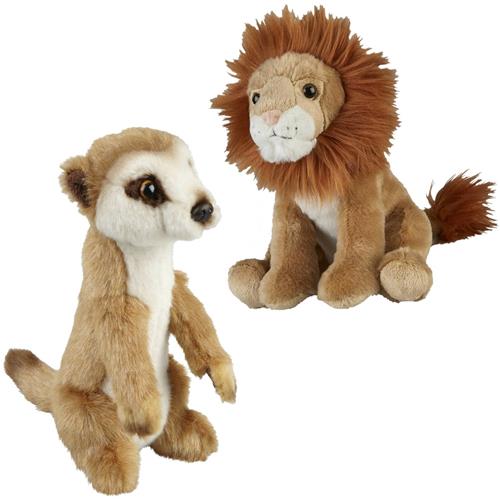 Dankzij het gebruik van hoogwaardig pluche materiaal voelen de knuffeldieren heerlijk zacht aan en zijn ze zeer comfortabel om mee te knuffelen. De set bestaat uit een leeuw en een stokstaartje, elk met zijn eigen unieke charme. Kinderen kunnen hun eigen verhalen bedenken en avonturen beleven met deze lieve knuffels.