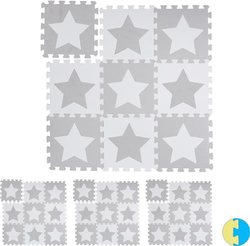 Relaxdays 36 x puzzelmat ster - speelmat - speelkleed - vloerpuzzel - speeltapijt grijs