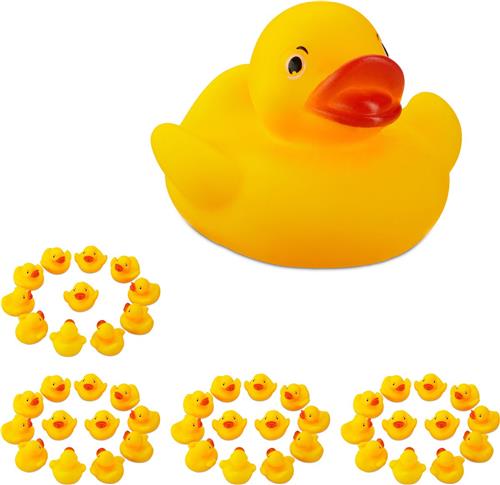 Creëer een vrolijke en speelse sfeer in het bad met deze set van 48 gele badeendjes van Relaxdays. Deze schattige badspeelgoed badeendjes zijn perfect voor een speelse badtijd. Elke badeend is 5 cm groot en gemaakt van rubber, waardoor ze gemakkelijk blijven drijven in het water. Met het CE-markering zichtbaar, kunt u er zeker van zijn dat deze badeendjes voldoen aan alle veiligheidsnormen. Deze set is ideaal voor kinderen van alle leeftijden, van 0 tot 99 jaar.