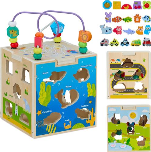 Relaxdays activiteitenkubus - kralenspiraal - vormenstoof - motorisch speelgoed - design B